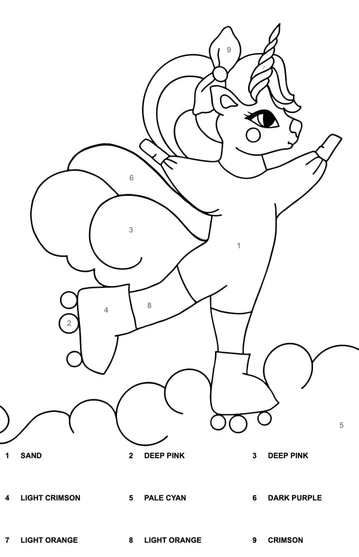 Schönes Einhorn Farbe nach Zahlen