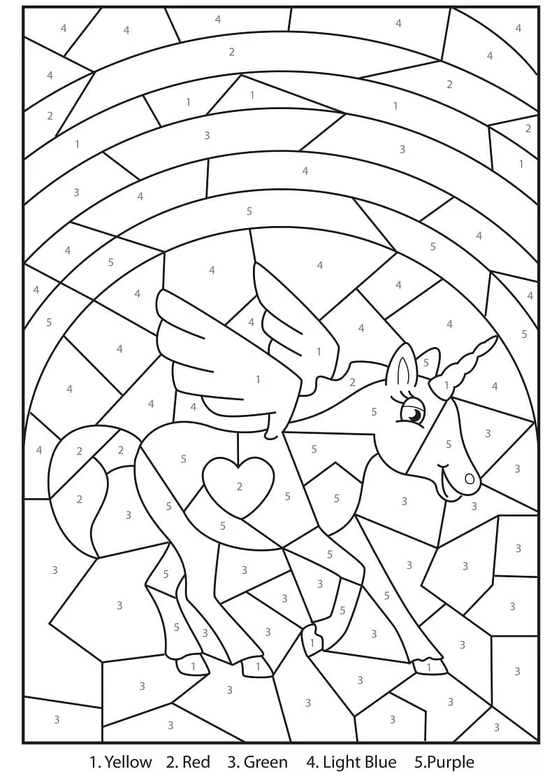 : Druckbar herunterladen Niedliches Einhorn Farbe nach Zahlen Malvorlage