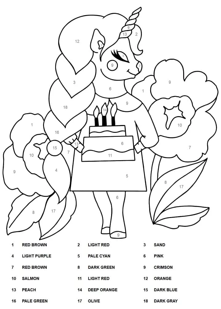 Einhorn und Kuchen Malen nach Zahlen
