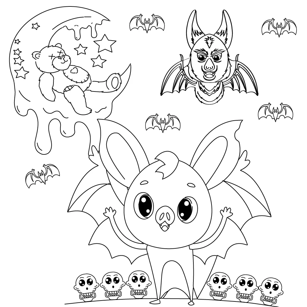 : Druckbar herunterladen Gruselige Kawaii-Fledermäuse Malvorlage