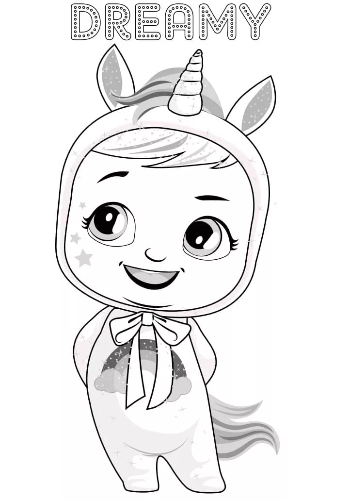 : Druckbar herunterladen Verträumtes Schrei-Babie Malvorlage