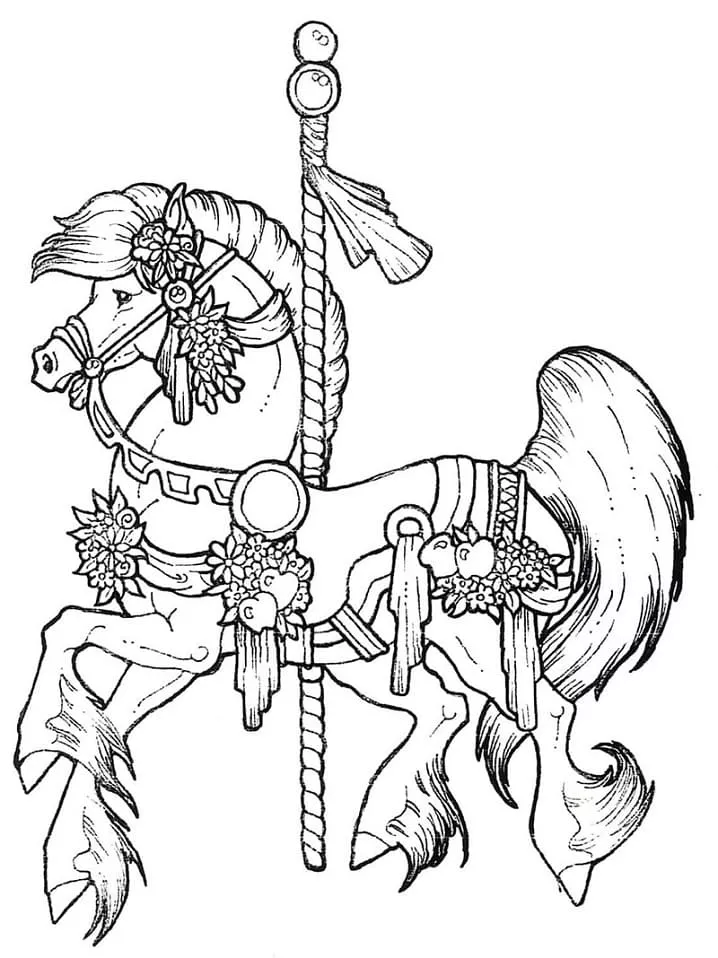 : Druckbar herunterladen Karussell Pferd Frei Malvorlage