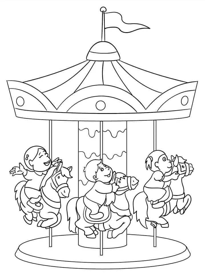 : Druckbar herunterladen Kinder auf Karussell Malvorlage