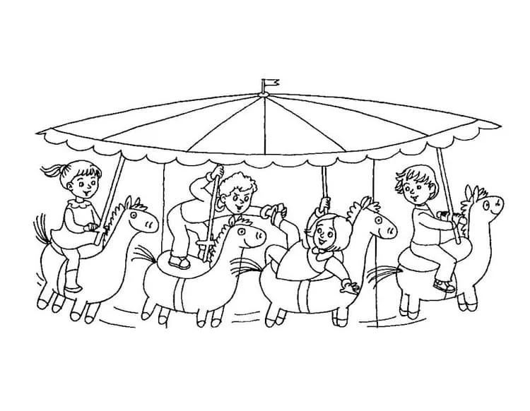: Druckbar herunterladen Kinder auf dem Karussell Malvorlage