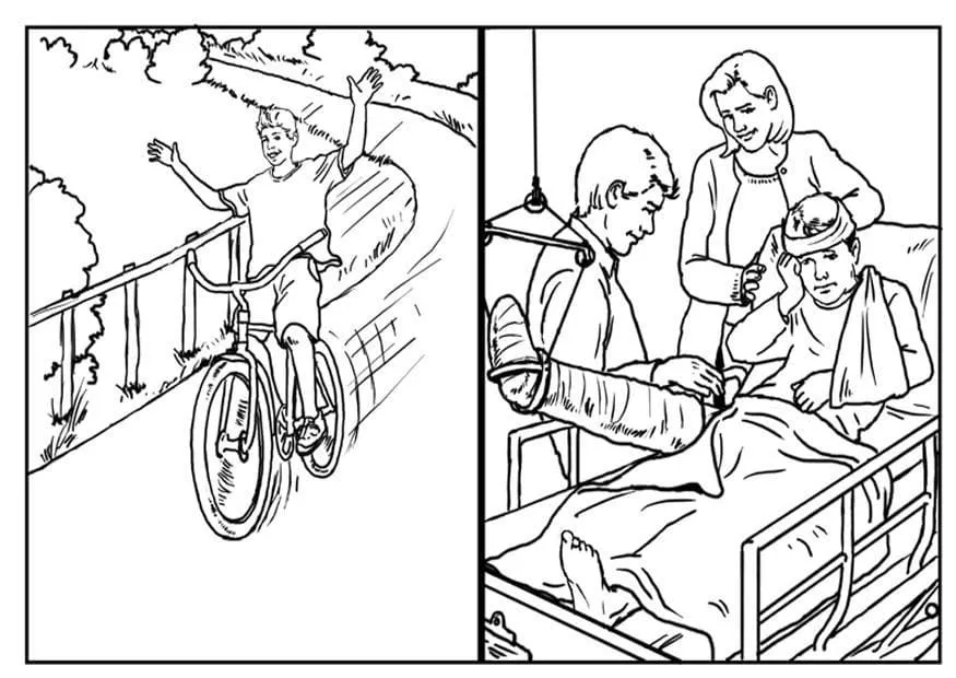 : Druckbar herunterladen Fahrradsicherheit zum Ausdrucken Malvorlage