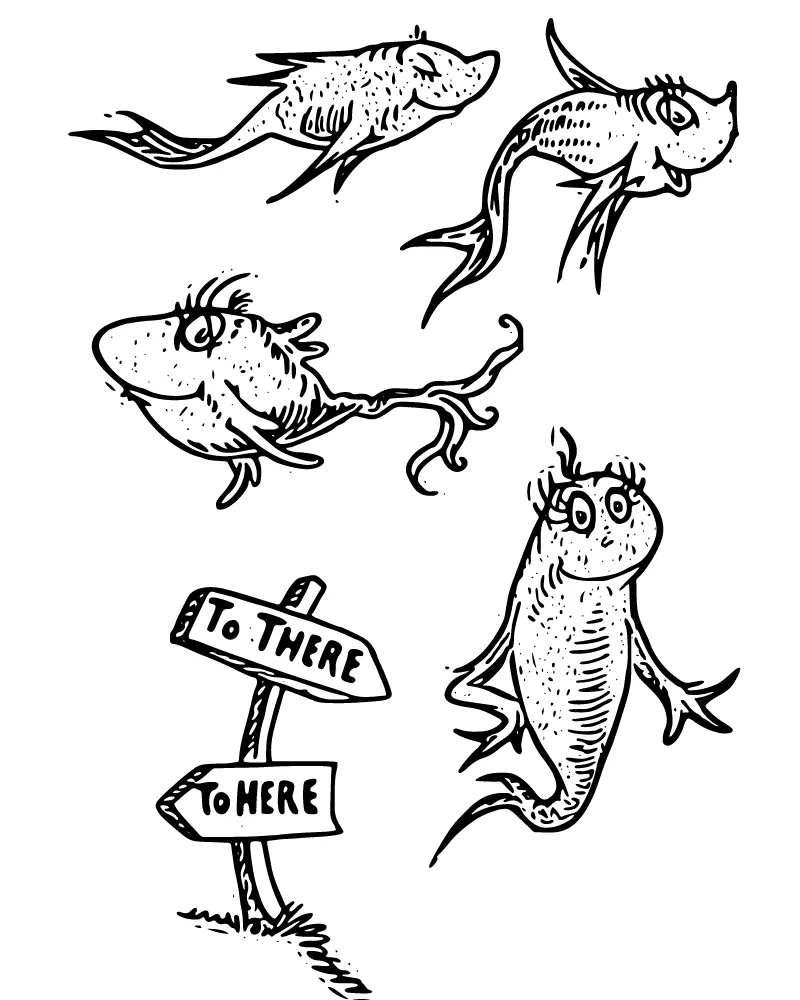 : Druckbar herunterladen Ein Fisch, zwei Fische Richtung Malvorlage
