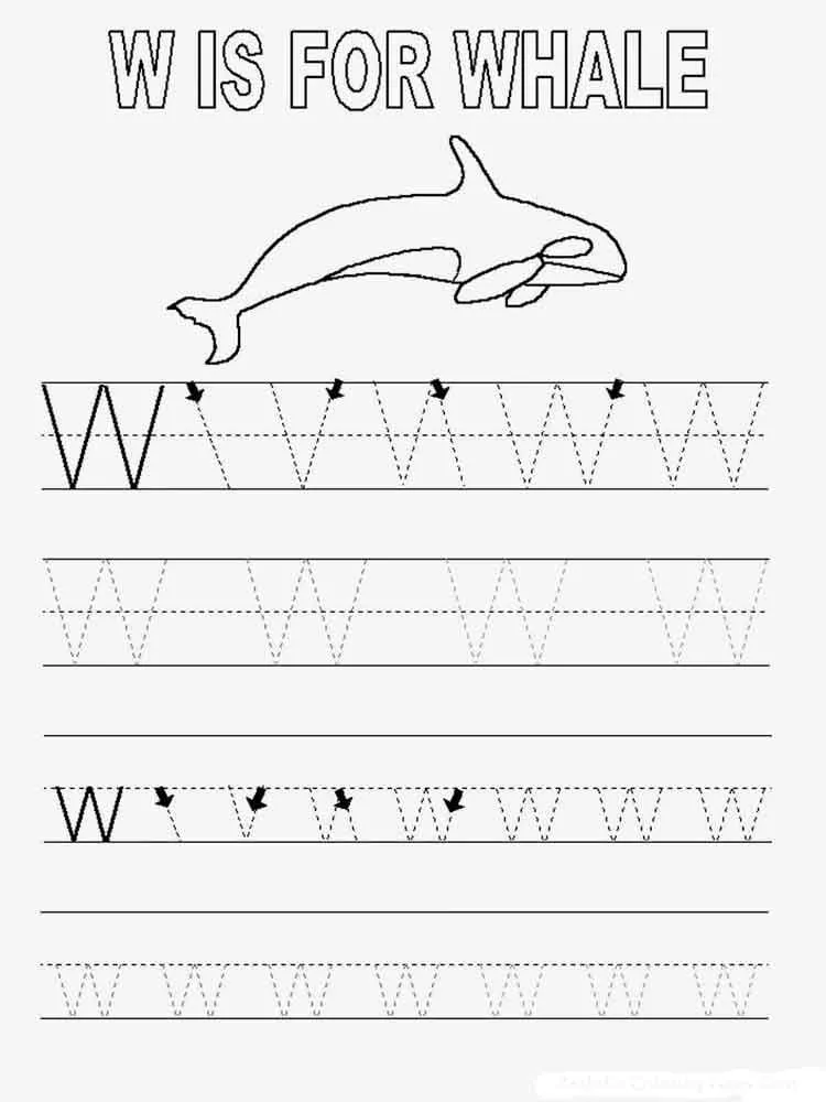 : Druckbar herunterladen Nachzeichnen des Buchstabens W Malvorlage