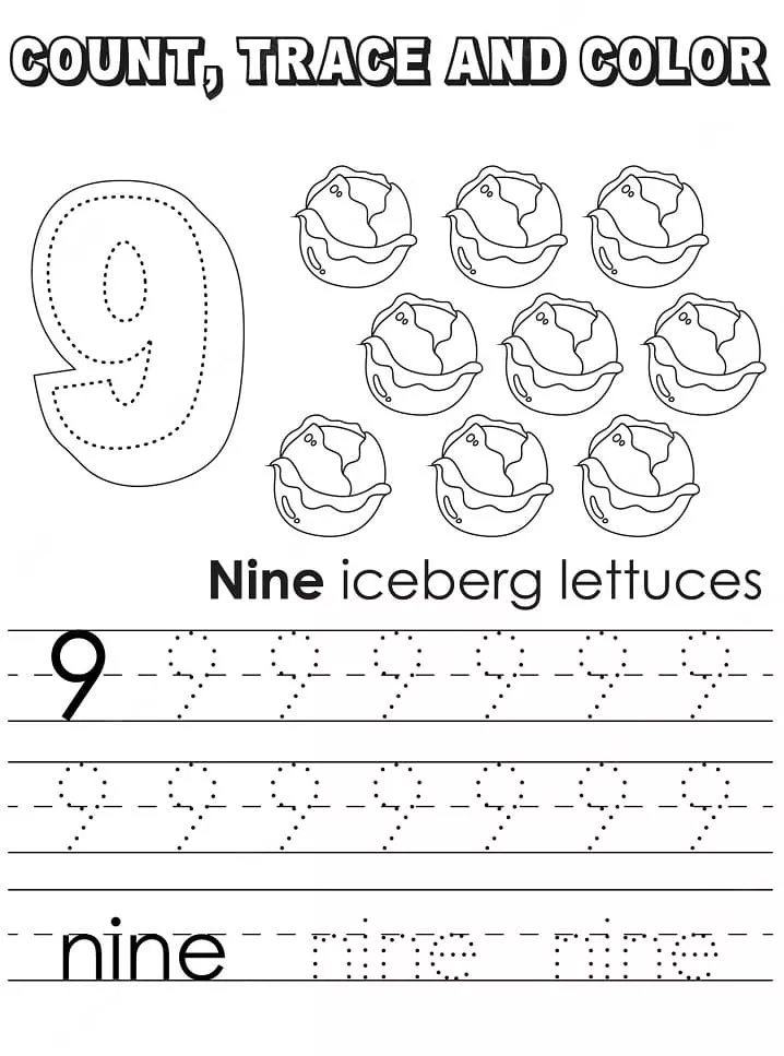 Klicken Sie auf die Schaltfläche Nummer 9 Rückverfolgung Malvorlagen, um die Druckversion anzuzeigen oder online auszumalen (kompatibel mit iPad und Android-Tablets).