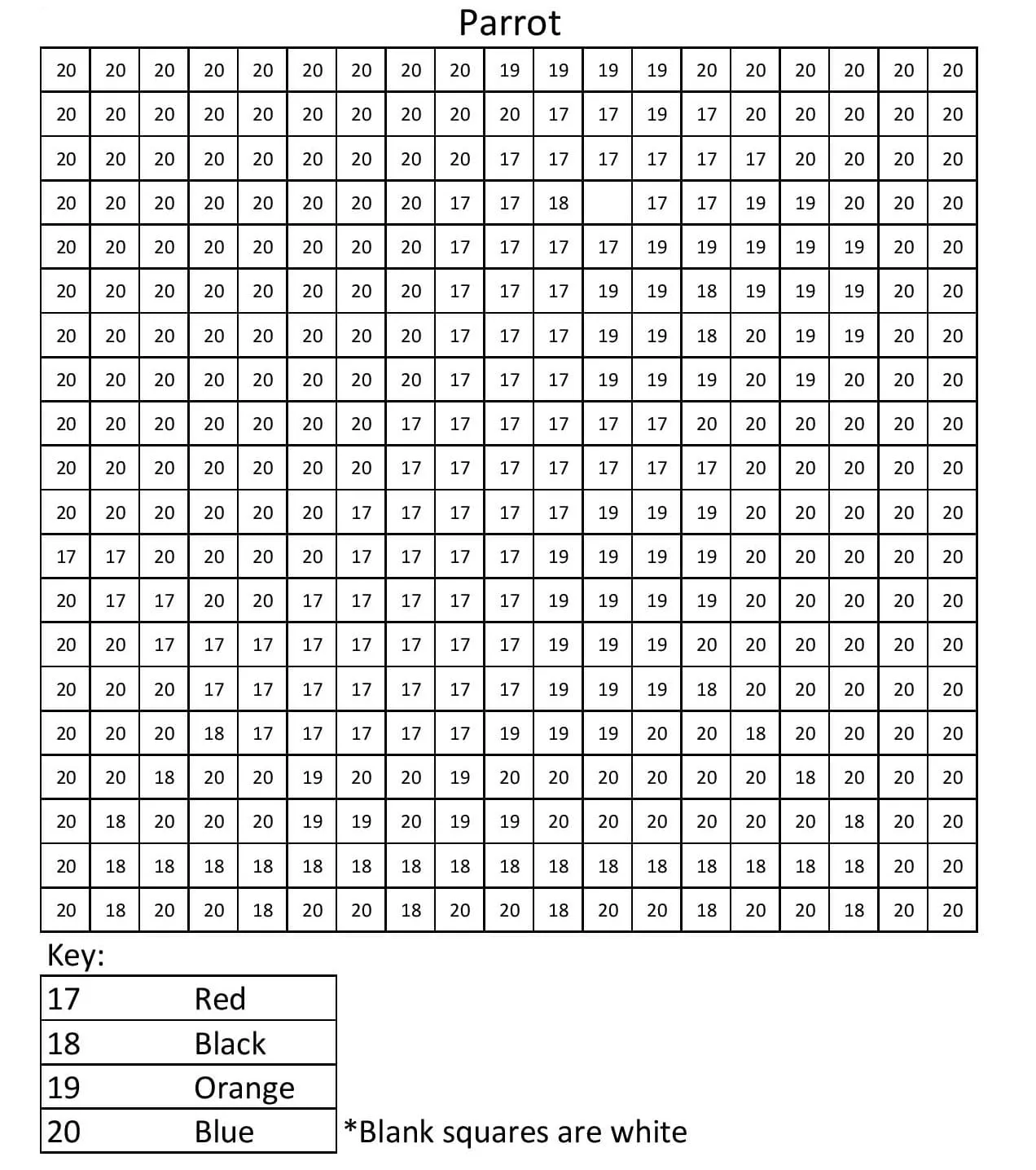 Klicken Sie auf die Schaltfläche Parrot Pixel Art Color By Number Malvorlagen, um die Druckversion anzuzeigen oder online auszumalen (kompatibel mit iPad und Android-Tablets).
