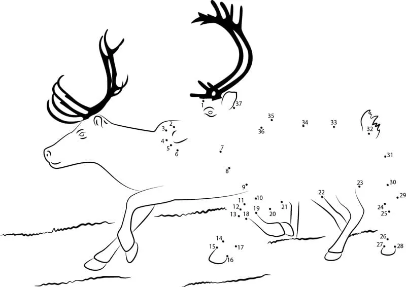 : Druckbar herunterladen Baby Rentier Punkt zu Punkt Malvorlage