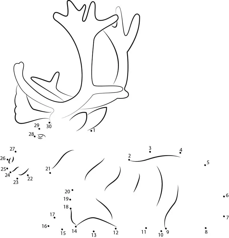 Klicken Sie auf die Schaltfläche Rentier von Punkt zu Punkt drucken Malvorlagen, um die Druckversion anzuzeigen oder online auszumalen (kompatibel mit iPad und Android-Tablets).