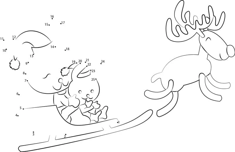 : Druckbar herunterladen Rentier Weihnachten Punkt zu Punkt Malvorlage