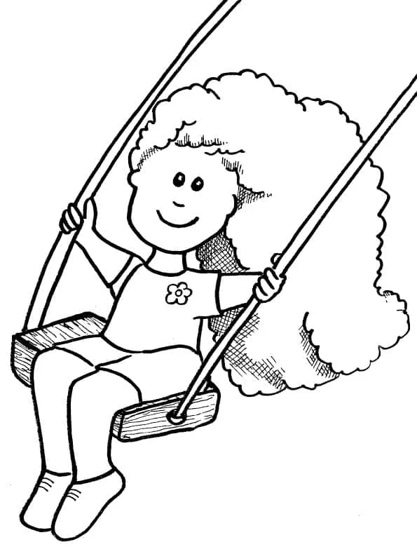 : Druckbar herunterladen Süßes Mädchen auf Schaukel Malvorlage