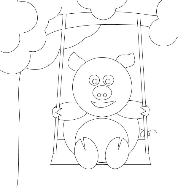 : Druckbar herunterladen Schwein auf Schaukel Malvorlage