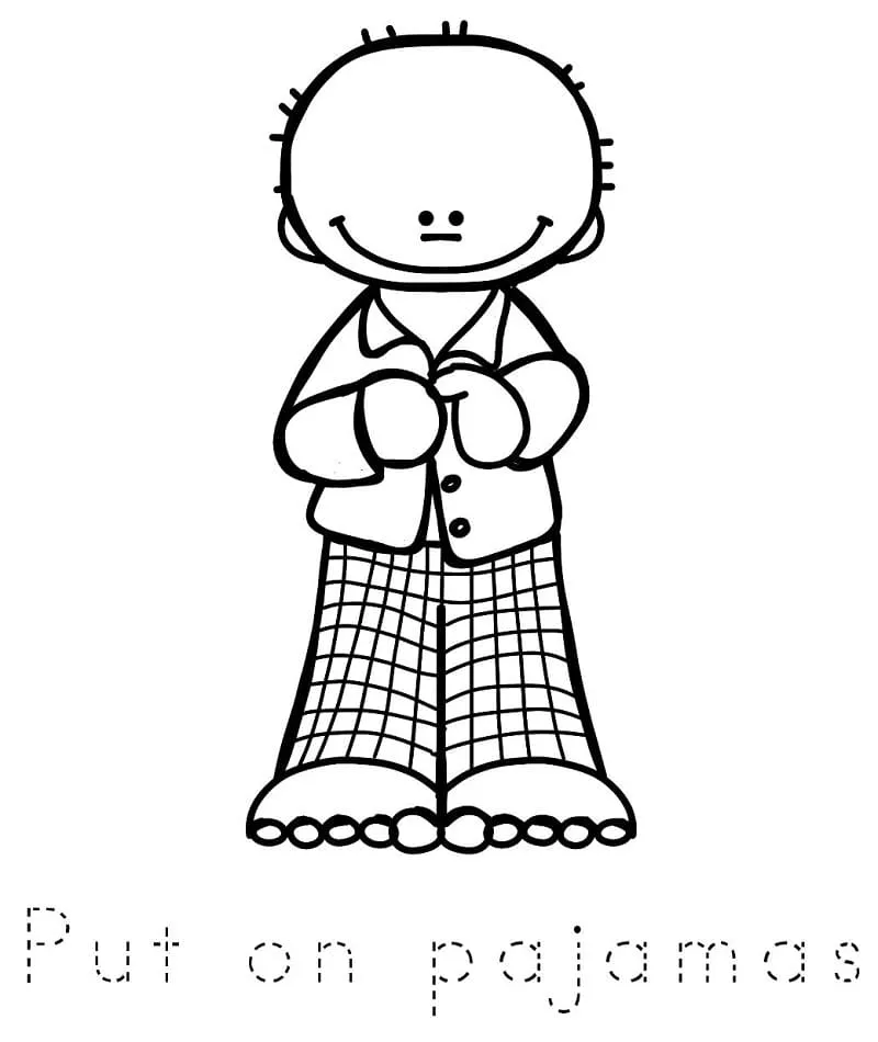 : Druckbar herunterladen Pyjama anziehen Malvorlage