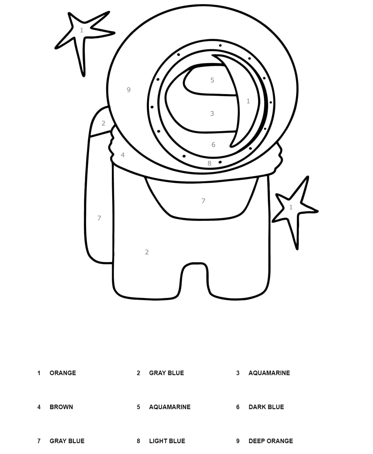 Drucken Sie Among Us Malen nach Zahlen Arbeitsblatt
