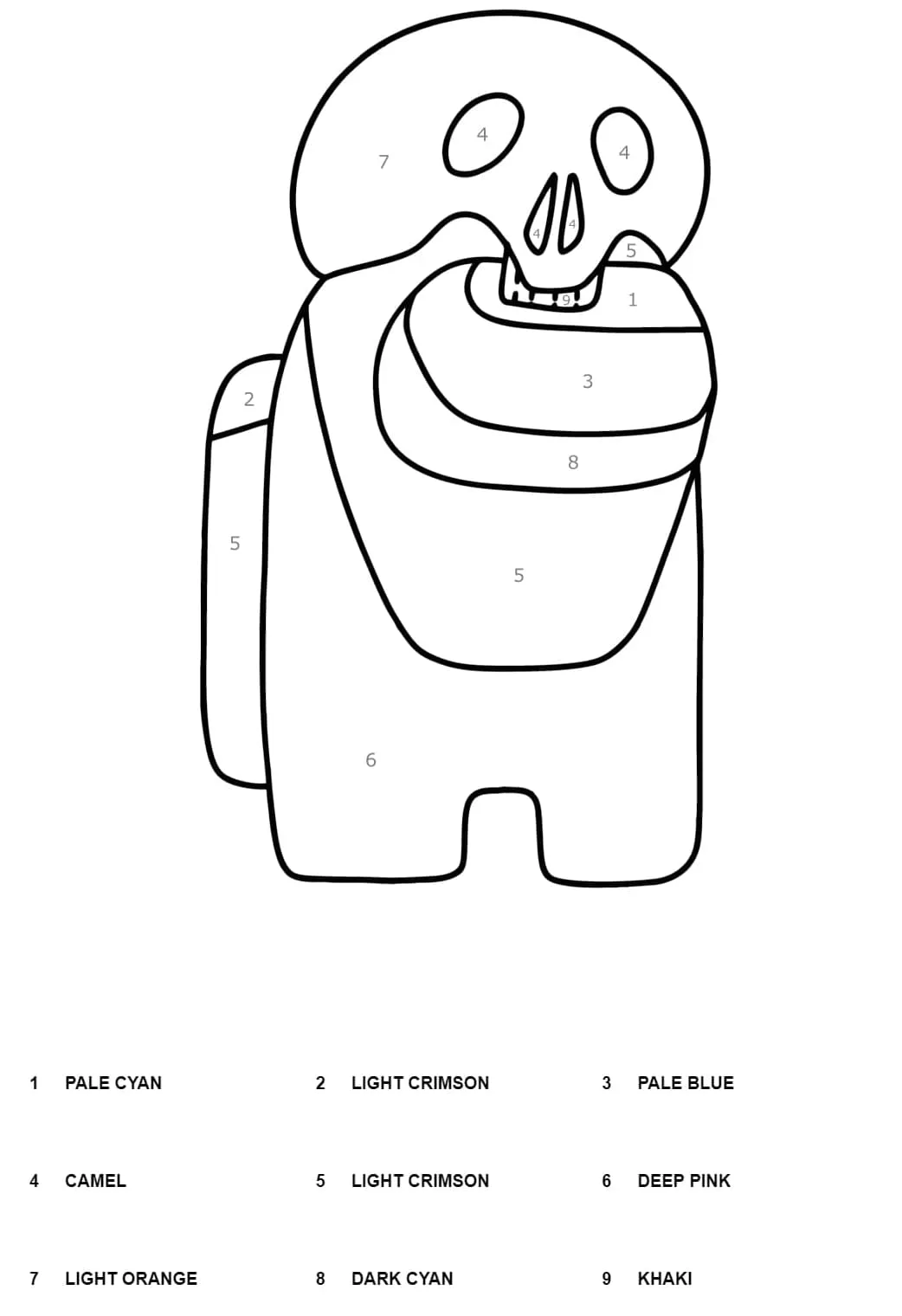 Drucken Sie Among Us Malen nach Zahlen Arbeitsblatt