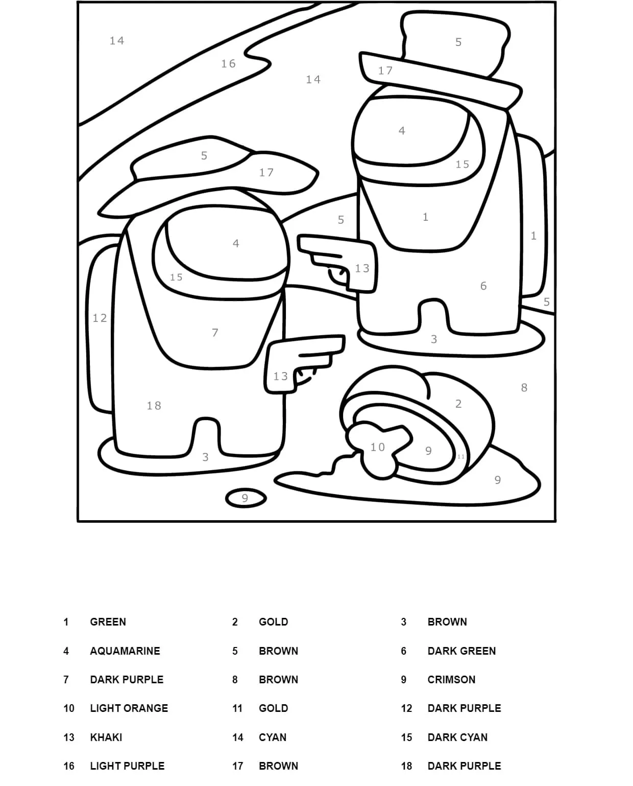 : Druckbar herunterladen Spiel Among Us Malen nach Zahlen Malvorlage