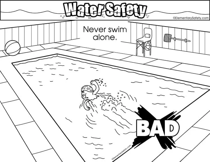 : Druckbar herunterladen Schwimmen Sie niemals alleine Malvorlage