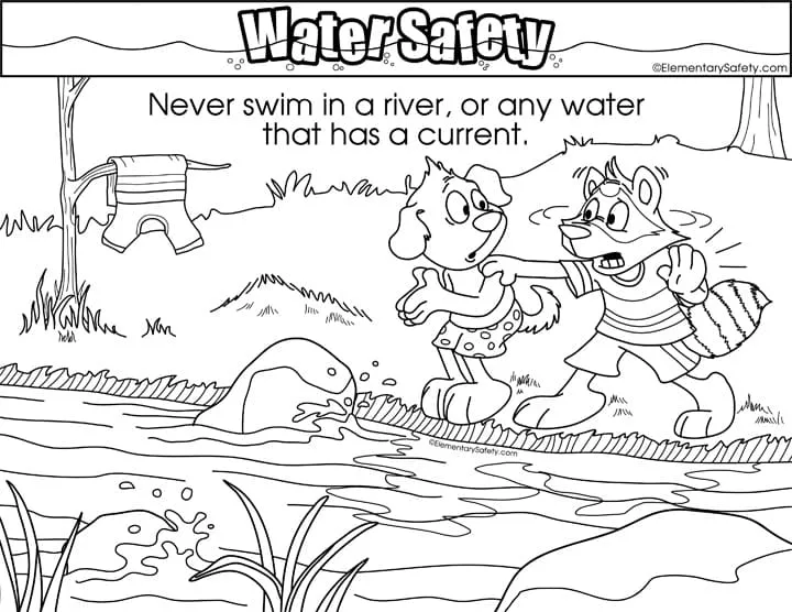 : Druckbar herunterladen Schwimmen Sie niemals im Fluss Malvorlage