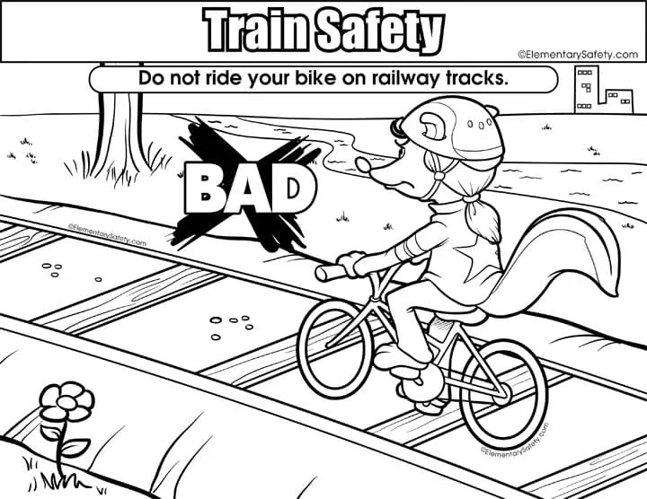 : Druckbar herunterladen Kein Radfahren auf Bahngleisen Malvorlage