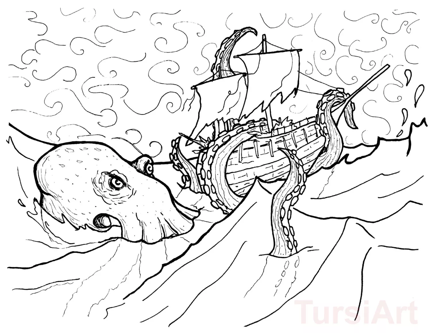 : Druckbar herunterladen Kraken Atttacking The Ship Malvorlage