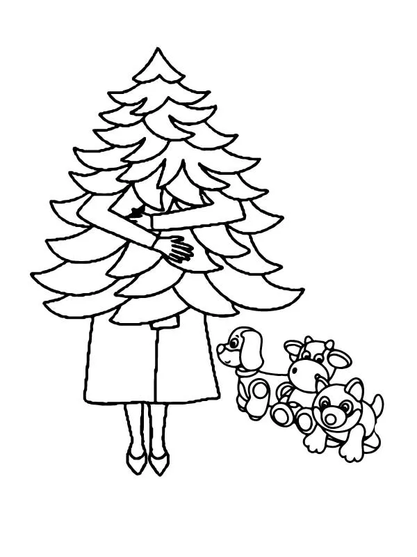 : Druckbar herunterladen Lady Carrying a Christmas Tree Malvorlage