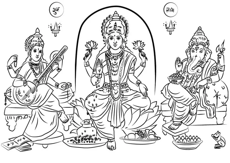 : Druckbar herunterladen Laxmi Ganesh Saraswati Malvorlage
