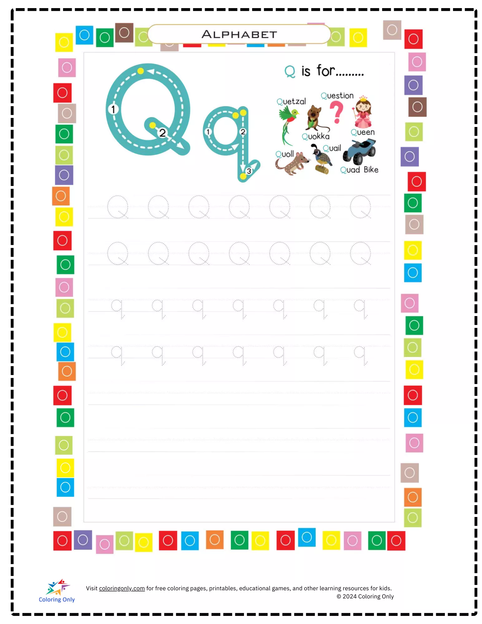 Beschreibung der Färbung : Druckbar herunterladen Learn & Write the Letter Q Free Printable Worksheet Malvorlage