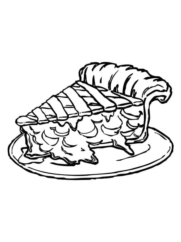 : Druckbar herunterladen Stück Kuchen auf dem Teller Malvorlage