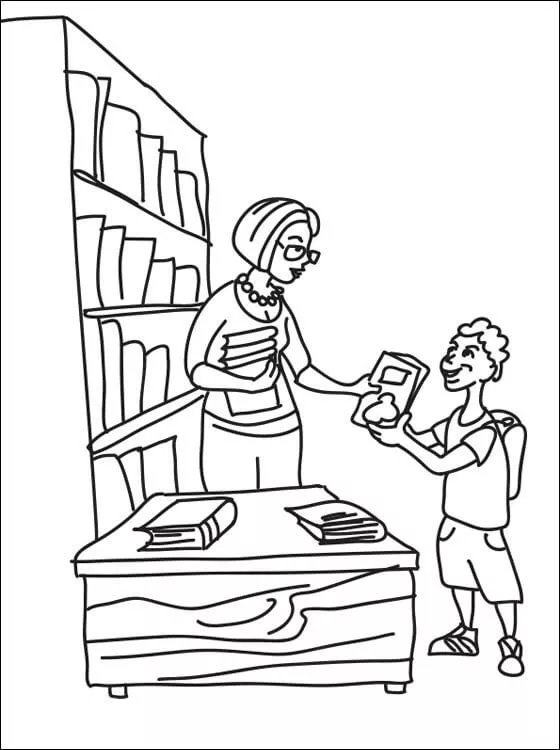 : Druckbar herunterladen Librarian and Boy Malvorlage
