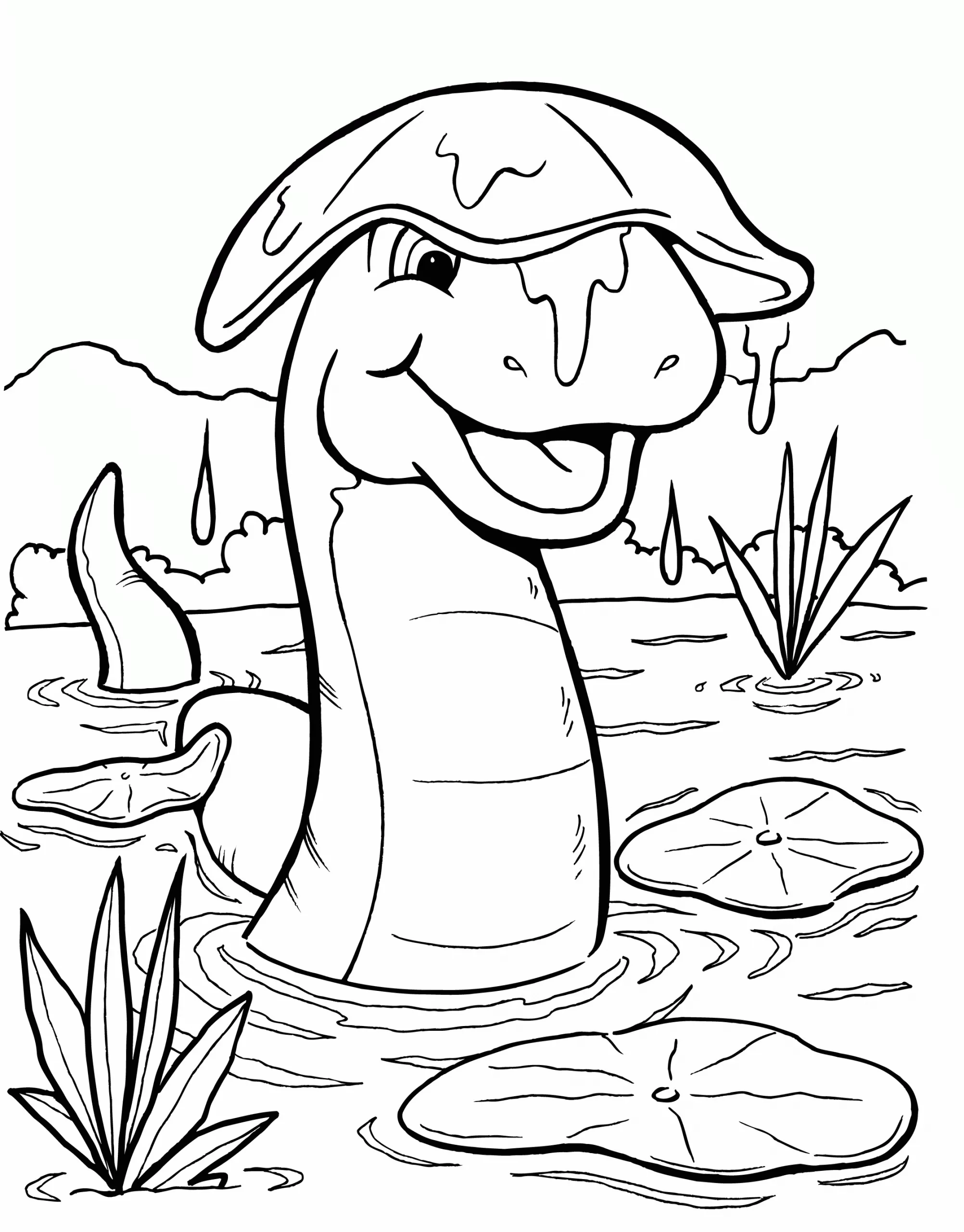 : Druckbar herunterladen Lily Pad and snake Malvorlage