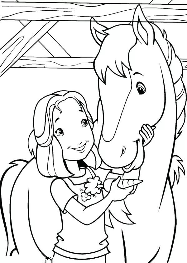 : Druckbar herunterladen Little Girl Feeding Horse With Carrot Malvorlage