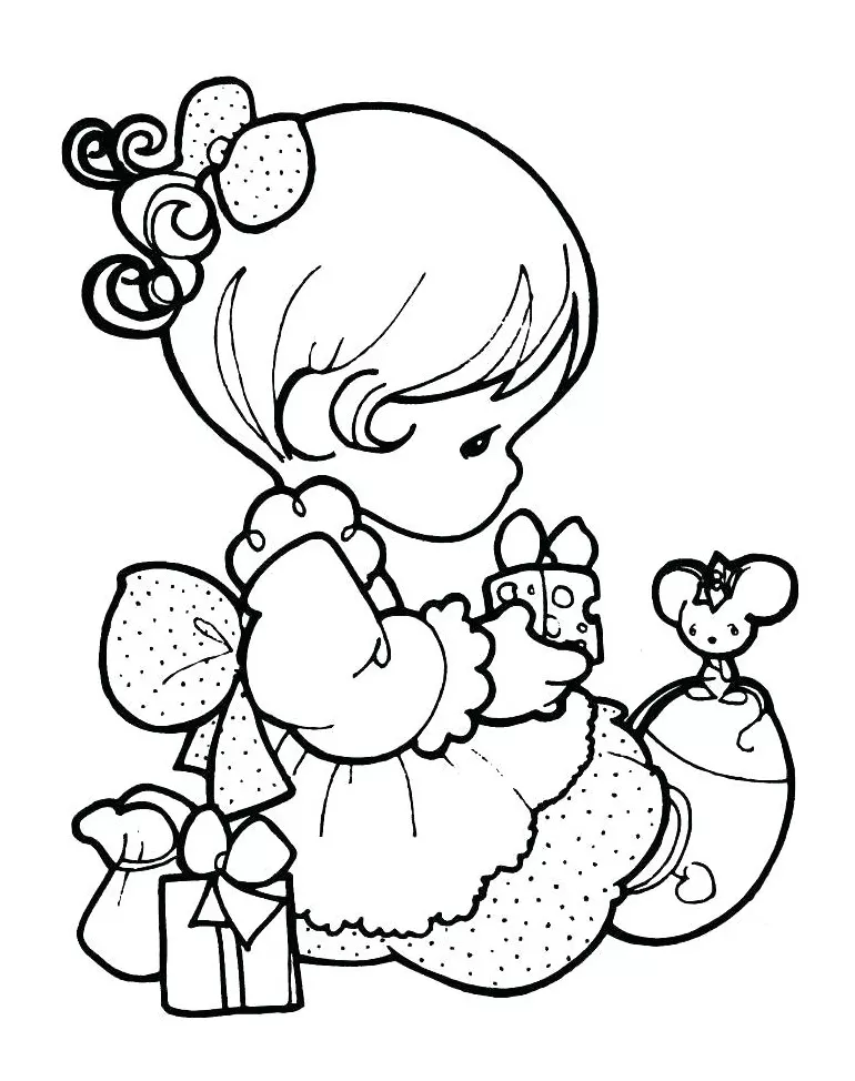 : Druckbar herunterladen Little Girl With A Mouse Malvorlage