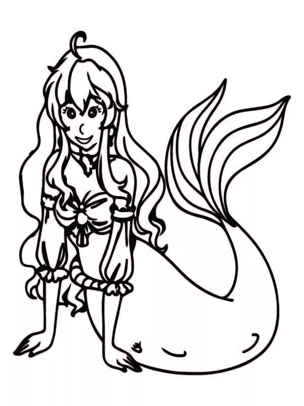 : Druckbar herunterladen Long Hair Mermaid Sitting Malvorlage