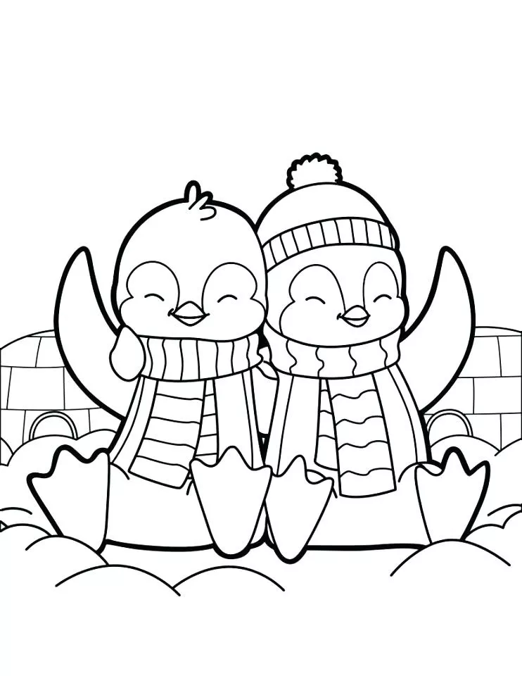 : Druckbar herunterladen Lovely Brother Penguins Malvorlage