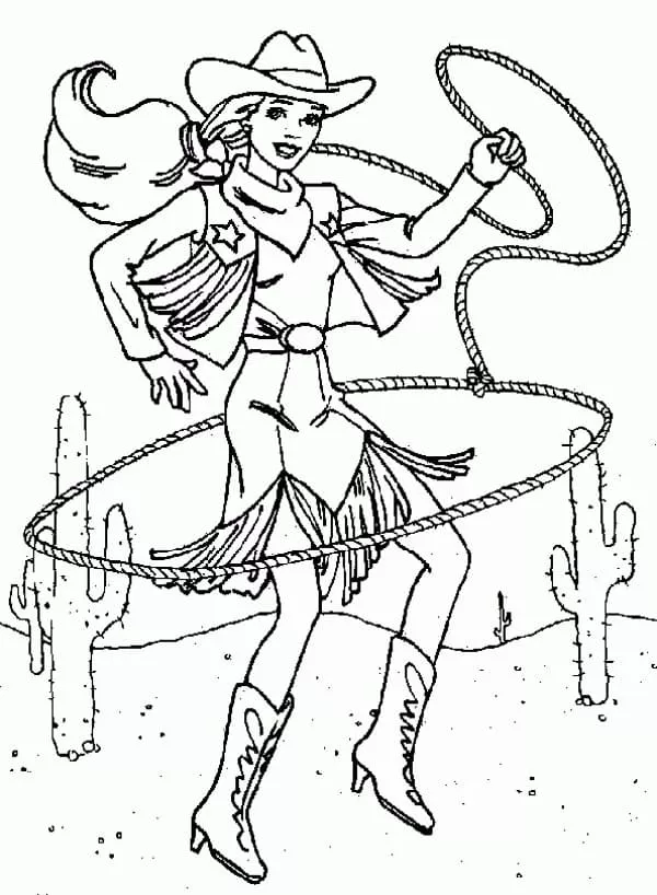 : Druckbar herunterladen Geniales Cowgirl Malvorlage