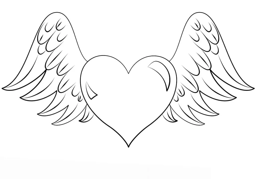 : Druckbar herunterladen Herz und Flügel Malvorlage