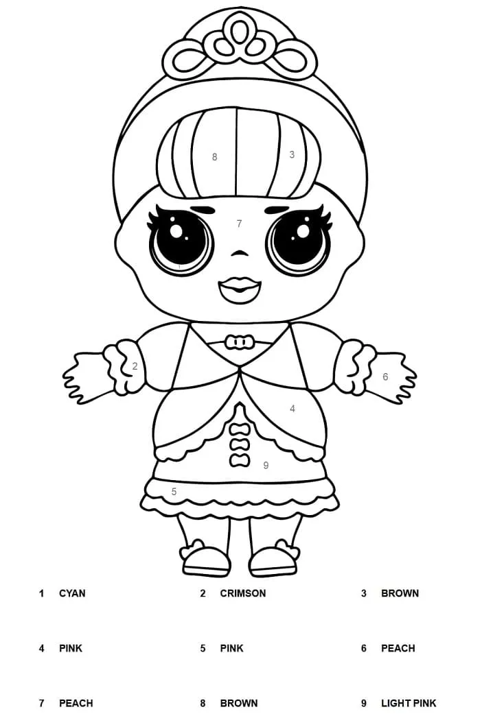 Beschreibung der Färbung : Druckbar herunterladen Fancy Doll LOL Überraschung Malen nach Zahlen Malvorlage