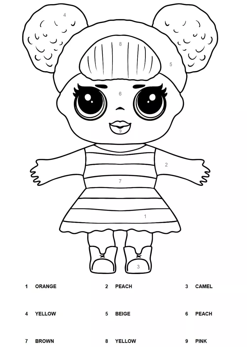 Beschreibung der Färbung : Druckbar herunterladen Bienenkönigin LOL Überraschung Malen nach Zahlen Malvorlage