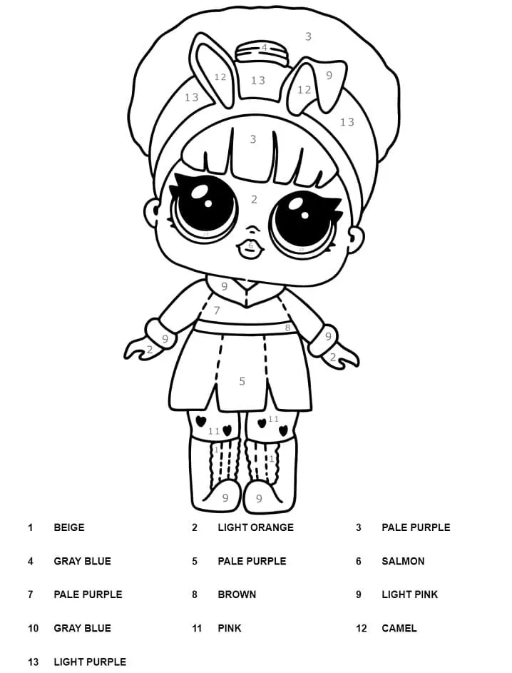 Beschreibung der Färbung : Druckbar herunterladen Schneehase LOL Überraschung Malen nach Zahlen Malvorlage