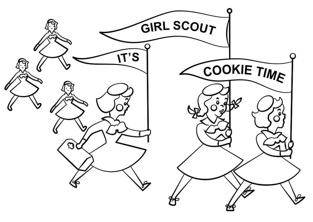 : Druckbar herunterladen Pfadfinderinnen-Keks-Zeit Malvorlage