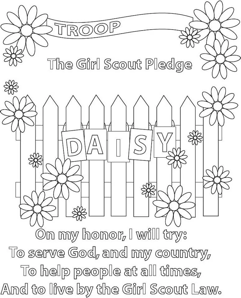 : Druckbar herunterladen Pfadfinderinnen-Versprechen Malvorlage
