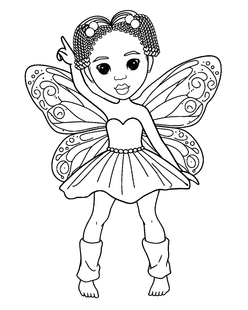 : Druckbar herunterladen Schwarzes Mädchen Fee Malvorlage