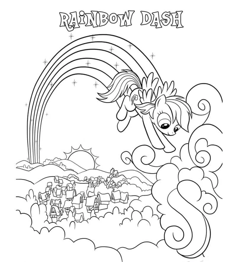 : Druckbar herunterladen Magical Rainbow Dash Malvorlage