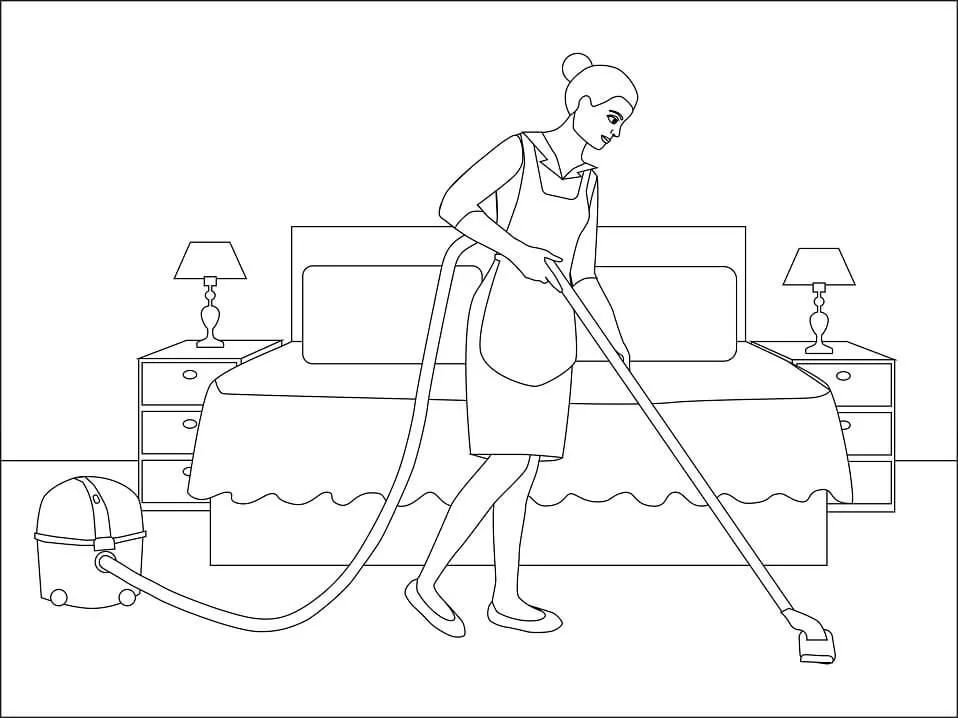 : Druckbar herunterladen Maid is Cleaning Floor Malvorlage
