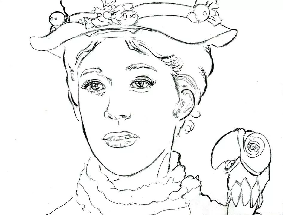 : Druckbar herunterladen Mary Poppins’s Face Malvorlage