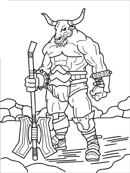 : Druckbar herunterladen Minotaur with Big Axe Malvorlage