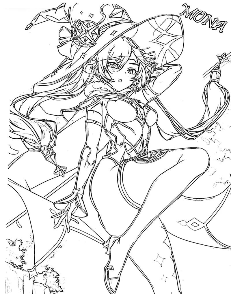 : Druckbar herunterladen Mona Genshin Impact Malvorlage