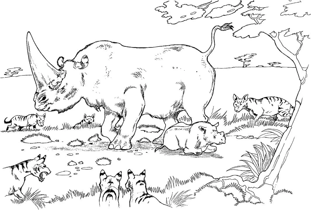 : Druckbar herunterladen Mother and Baby Rhino Malvorlage